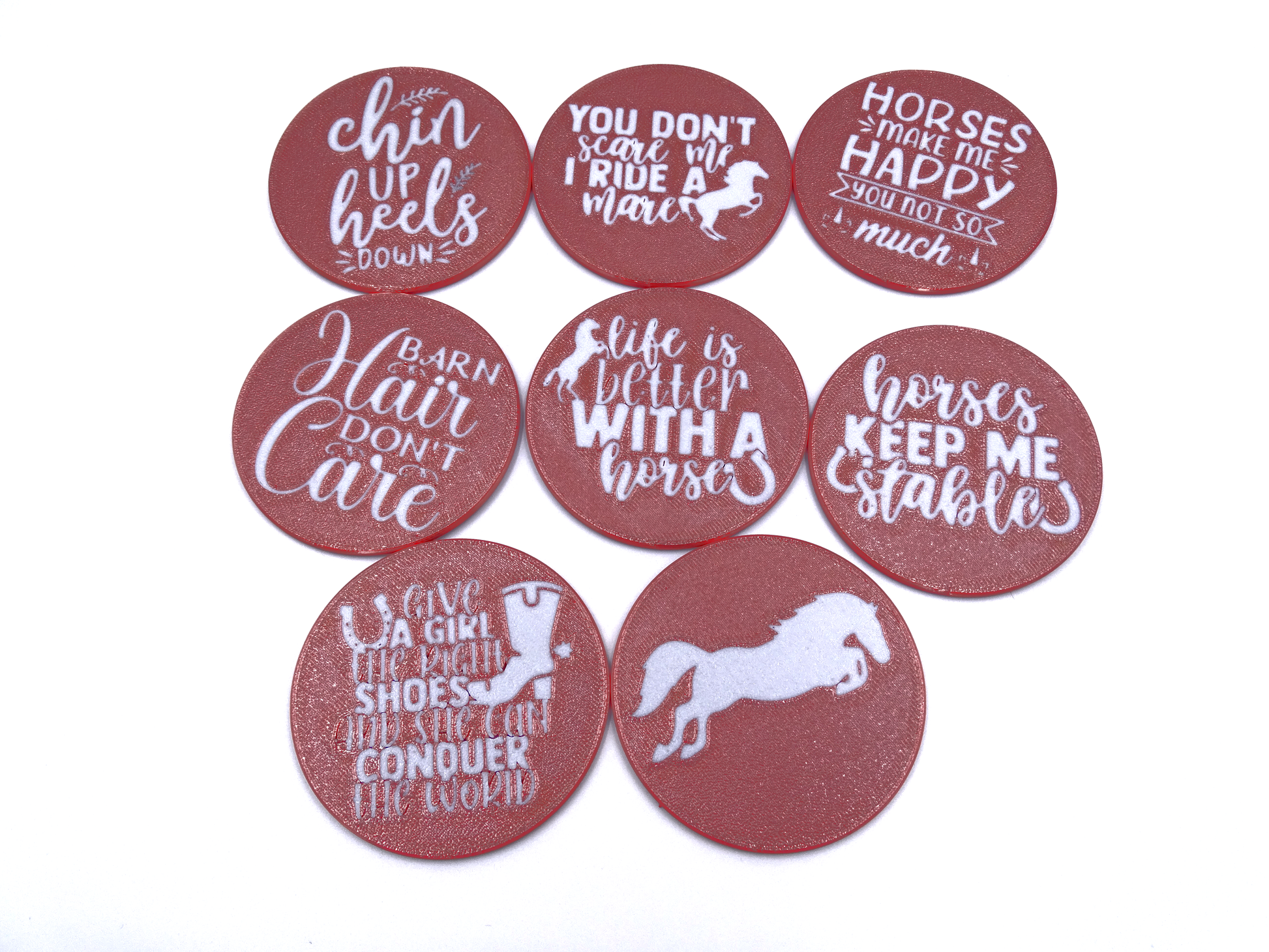 Diese wunderschönen Untersetzer wurden mithilfe modernster 3D-Drucktechnologie aus hochwertigem PLA (Polylactid) gefertigt. Mit inspirierenden und herzlichen Pferdesprüchen verziert, bringen diese Untersetzer die Liebe zu Pferden und die Weisheit, die sie verkörpern, in jedes Zuhause. Das biologisch abbaubare Material sorgt nicht nur für Umweltfreundlichkeit, sondern auch für eine bemerkenswerte Langlebigkeit. Perfekt, um Getränke stilvoll abzustellen und gleichzeitig eine Leidenschaft für Pferde auszudrücken. Ideal als Geschenk für Pferdeliebhaber oder als besondere Ergänzung für den eigenen Wohnbereich.